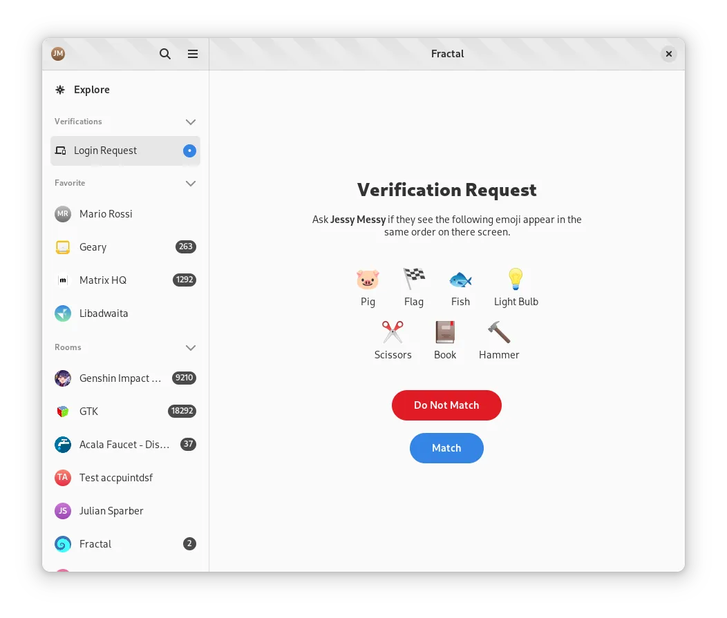 Fractal-Next 现在支持通过扫描其他用户的二维码或通过表情符号来验证其他用户