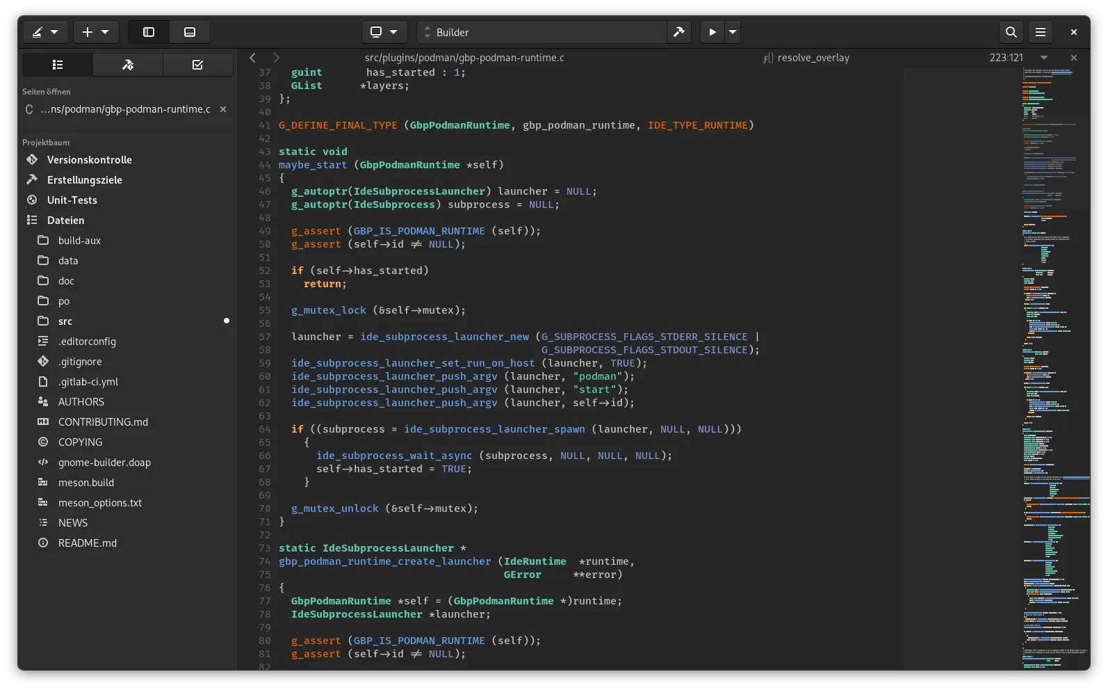 GNOME Builder 现在可以正确地将文件解析到 toolbox 或 podman 容器中,从而可以提供来自容器的 clang 补全、符号解析和悬停信息。这应该使在 C/C++ 中使用容器的工作更加愉快。此外,Christian 调整了 Builder 中的配色方案,因此 Adwaita 配色方案具有更好的对比度和更漂亮的颜色调色板,以更好地区分元素。Veli 进行了这项工作,并编写了一个插件,以启用 Builder 对 reStructured Text 的 lint 检测。我们还修复了 CMake 插件中关于目标路径解析的一个小错误。
