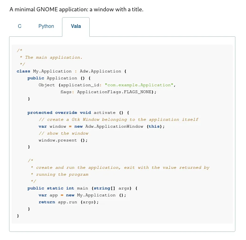 《初学者教程》中的示例现在也提供 Vala 版本。现在是开始用 Vala 开发你的 GNOME 应用的最佳时机!也感谢 Nahu 的支持。 这个是合并请求。