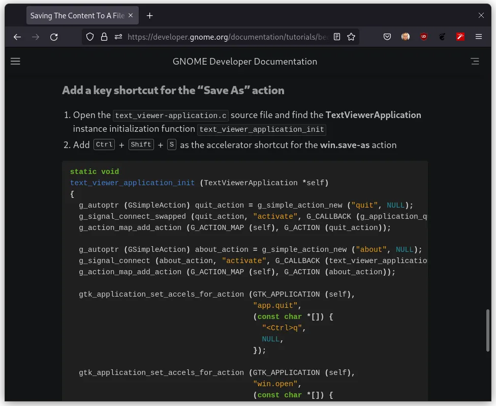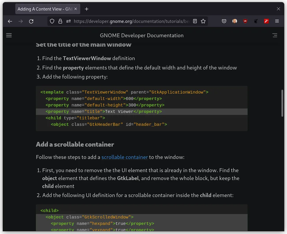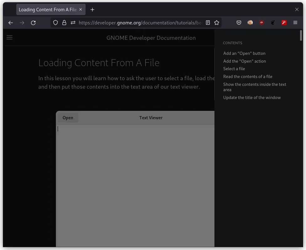 我已在开发者文档网站上添加了一个“入门”教程;您可以按照各种课程,从 Builder 中的基本 GNOME 应用程序模板到可用的简单文本查看器。在流程结束时,您将了解如何异步加载和保存文件,如何响应更改更新您的 UI,以及如何保存和加载设置:https://developer.gnome.org.cn/documentation/tutorials/beginners/getting_started.html