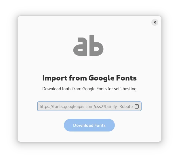 Webfont Kit Generator 现在包含一个工具,允许您使用 CSS API URL 从 Google Fonts 下载和导入字体,方便自行托管。