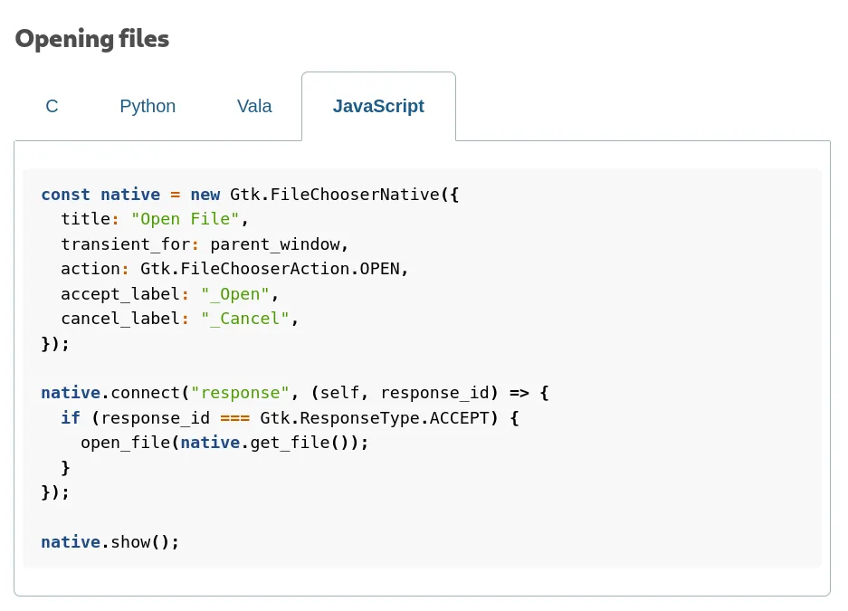 GNOME 开发者文档现在包含 JavaScript 示例。这是 合并请求。