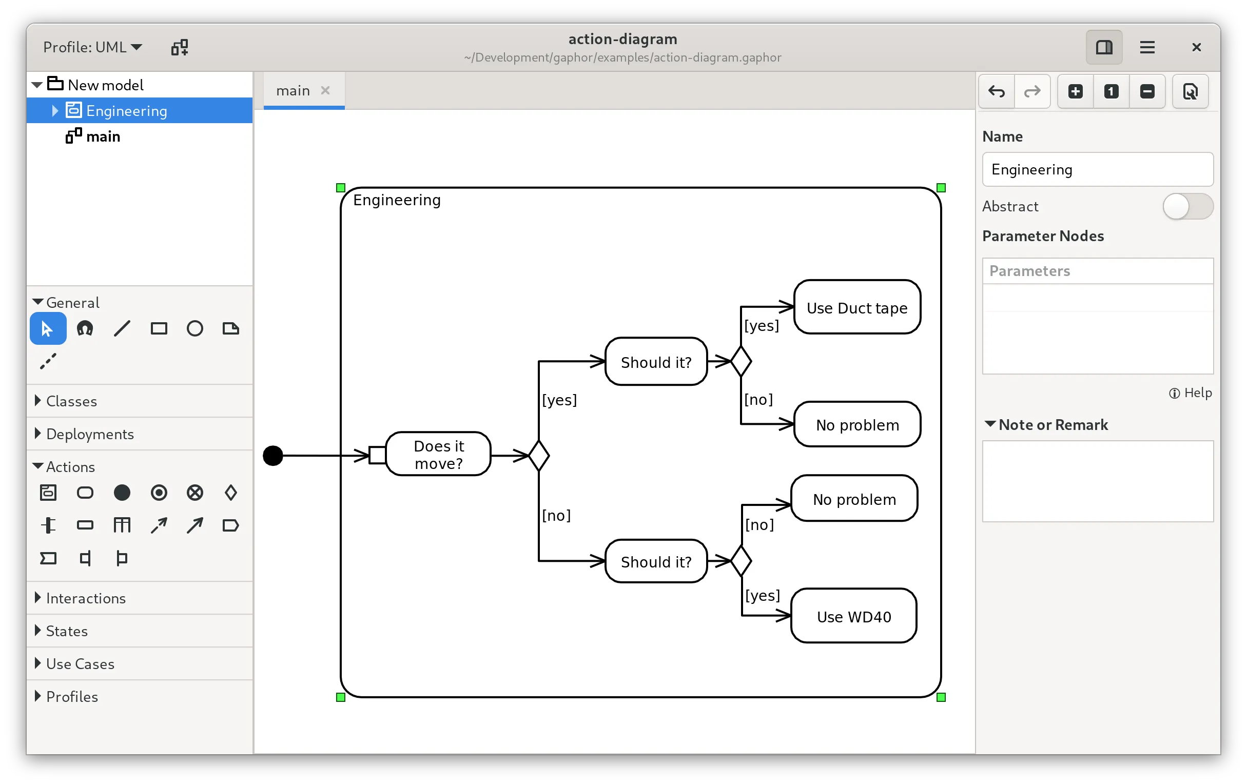 Gaphor 2.10.0 上周发布。改进包括活动图已扩展。模型加载已得到改进,Gaphor 终于支持从树视图拖放到图表。