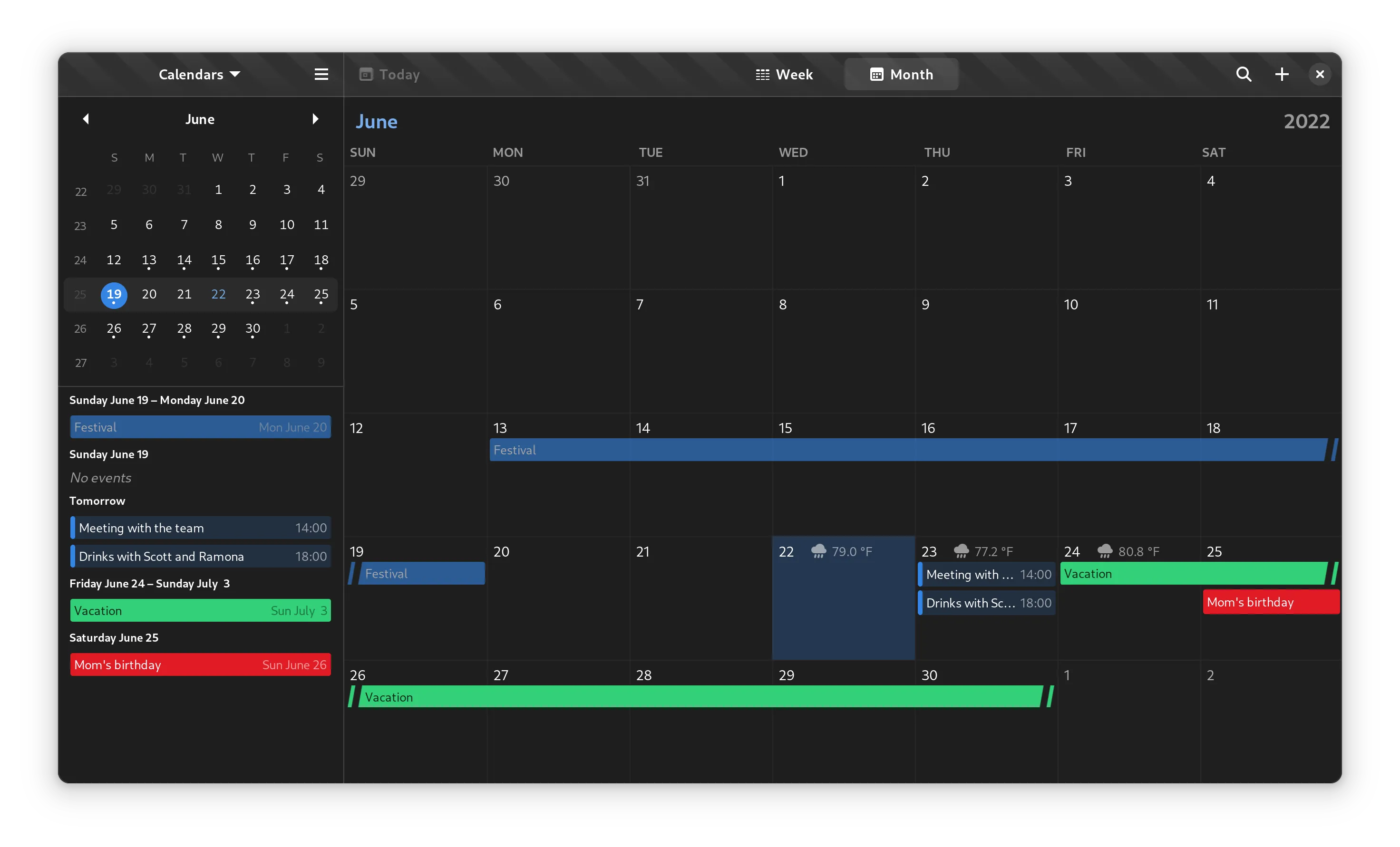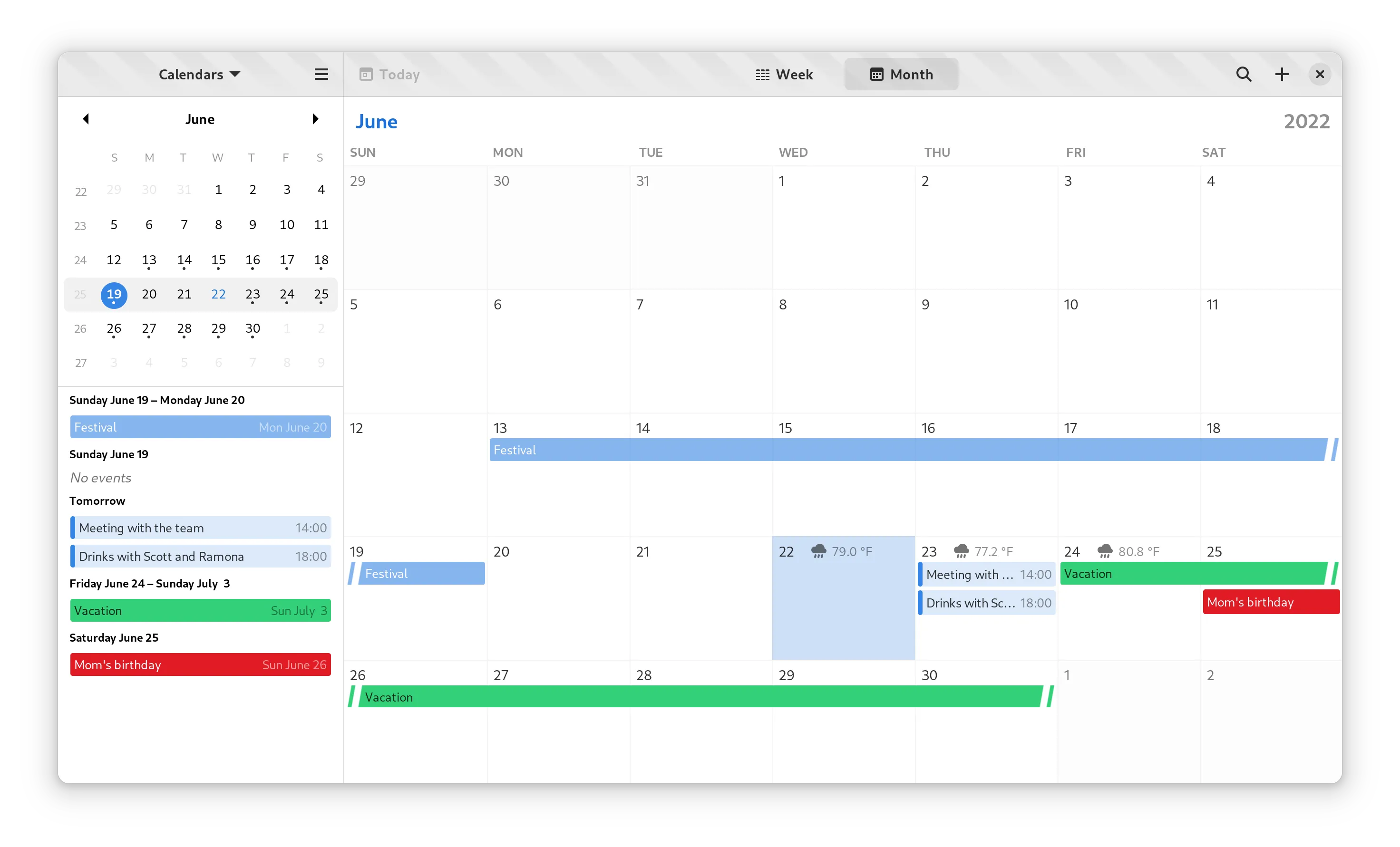 日历的事件 获得了全新的外观。新的样式与最新的设计更好地匹配,并支持深色模式。