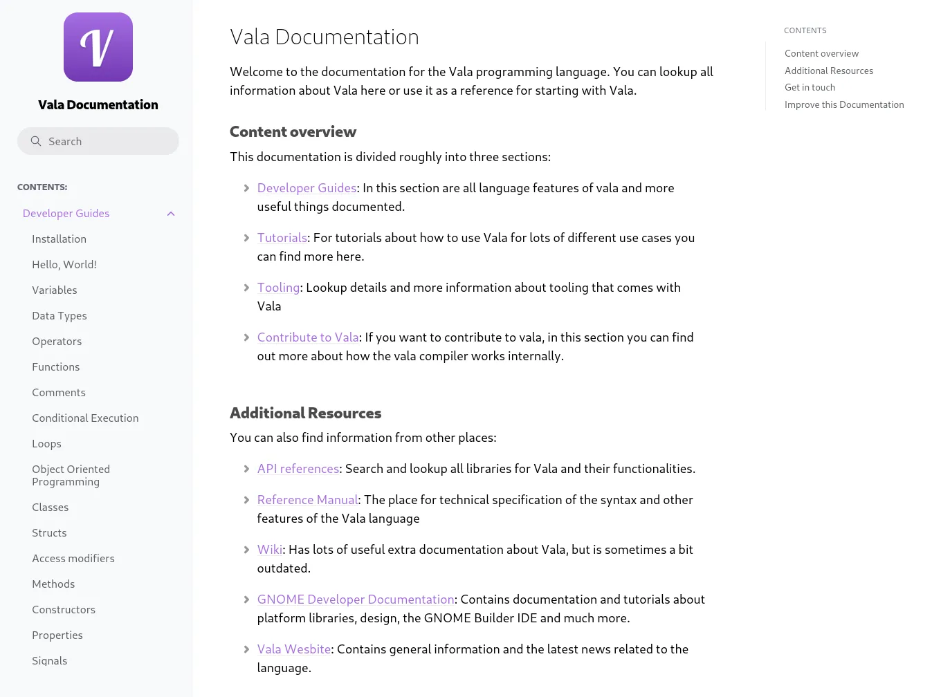 此外,Vala 参考手册已移植到新的格式 这里。源代码都可以通过 gitlab 轻松访问。