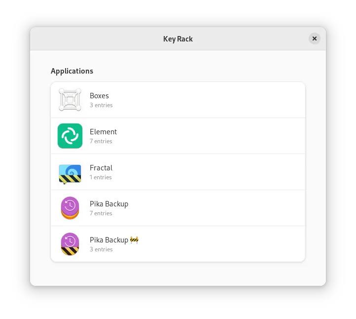 我宣布我的小型新项目 Key Rack。Key Rack 将允许您浏览和编辑密码、令牌以及 Flatpak 应用程序存储加密的其他内容。该应用程序旨在供开发人员调试,供所有人查找您再次忘记的密码。Key Rack 目前具有 alpha 质量。