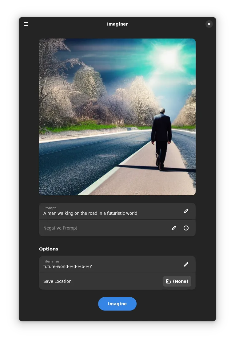 Imaginer 0.2.2 已发布,具有使用 本地运行的稳定扩散 的能力。现在也可以自定义文件名,并且修复了一些错误。