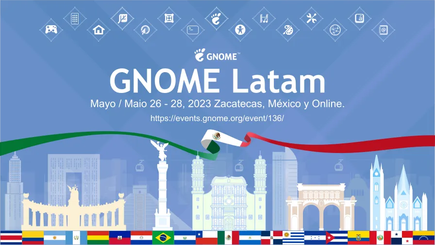 今天,5月26日星期五,以及明天,5月27日星期六,请加入我们,参加 GNOME Latam 2023!这是一个为期两天的活动,庆祝我们的拉丁美洲 GNOME 社区,并邀请来自美洲各地的演讲者。