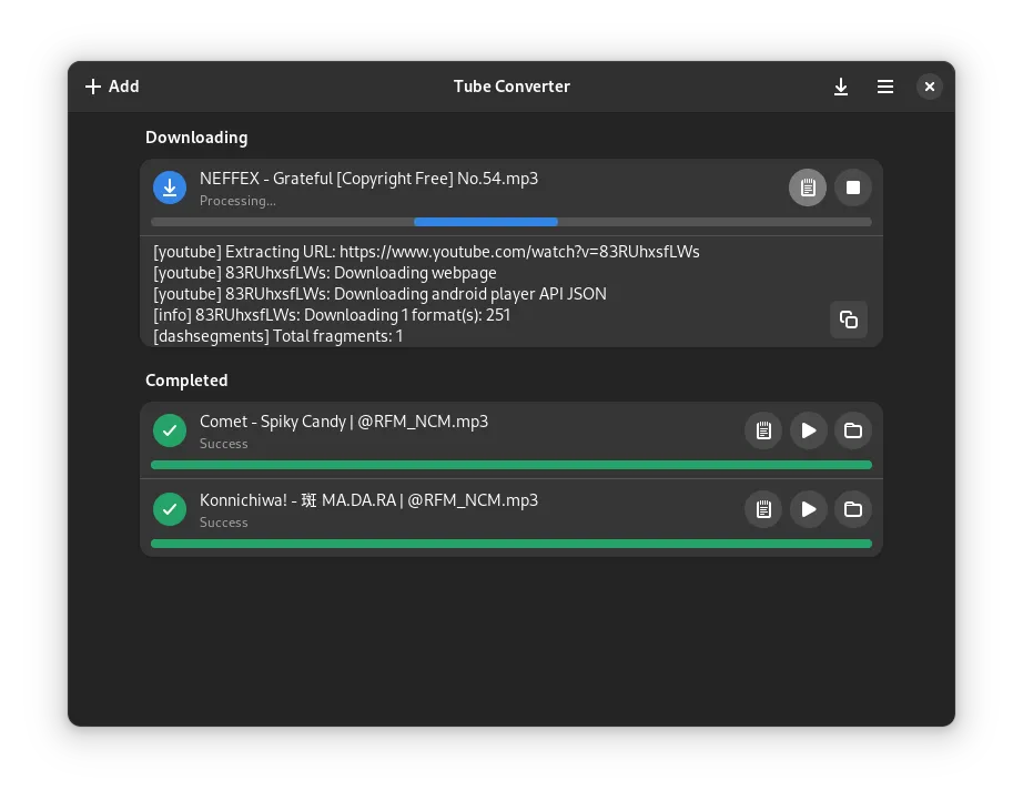 Tube Converter V2023.5.0 发布了!本周的发布功能是一个全新的后端,使 Tube Converter 更加稳定!除了新的后端,我们还添加了停止所有下载和重试所有失败下载的能力,以及清除所有排队下载的能力。此版本还引入了将下载的缩略图裁剪为正方形的功能(对于下载音乐很有用),以及选择视频下载的特定分辨率而不是最佳、良好、最差的质量。这是完整的变更日志