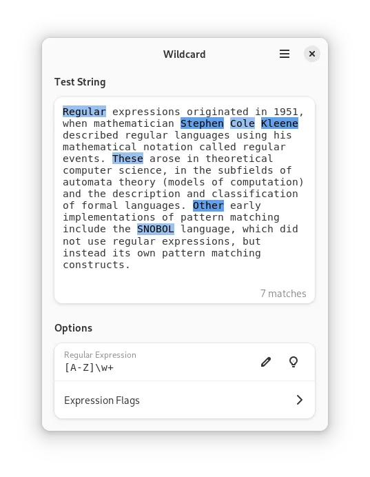 本周我发布了 Wildcard 0.2.0 版本,它带来了更精简的布局和一个不错的对话框,可以快速打开/关闭表达式标志,快来试试! :D