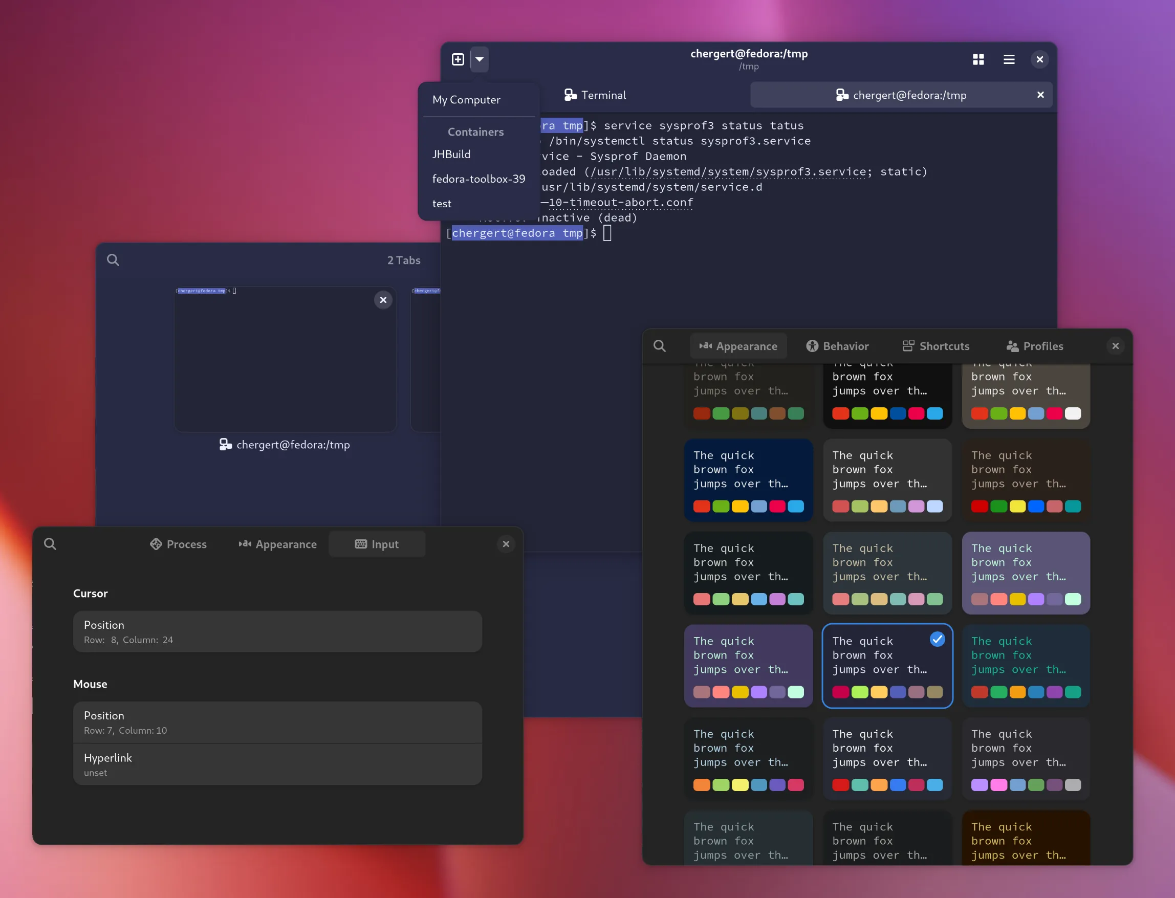 Prompt 是一个全新的终端应用程序,专注于不可变和面向容器的桌面。它可以被认为是 GNOME Builder 的配套终端!您可以在 https://blogs.gnome.org/chergert/2023/12/14/prompt/ 上了解容器技术是如何从 GNOME Builder 中提取的,以及设计可以作为 Flatpak 交付的强大终端需要什么。