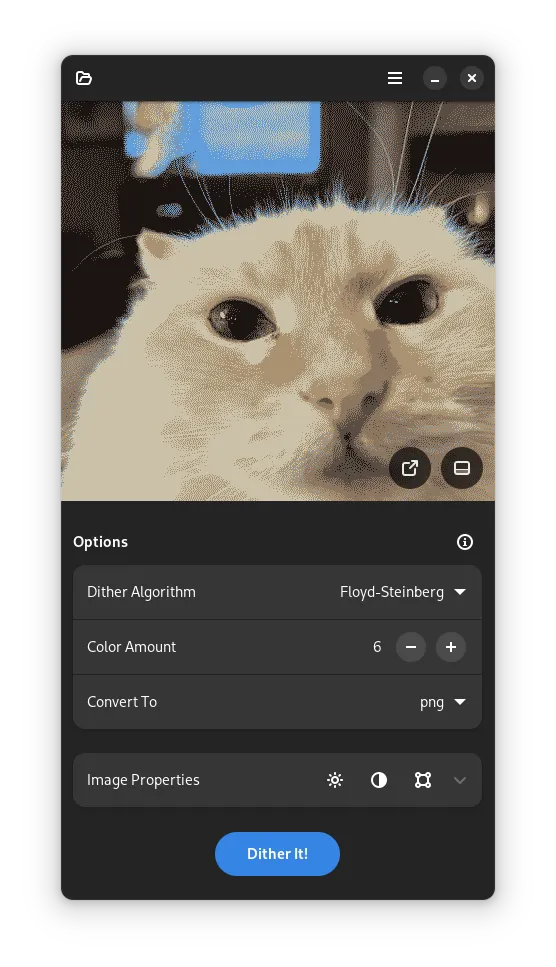 Halftone 0.5.0 改进了移动用户体验,将侧边栏移动到底部。它还具有选项保留功能,因此您现在可以使用相同的设置快速抖动多个图像。从 Flathub 获取此新版本