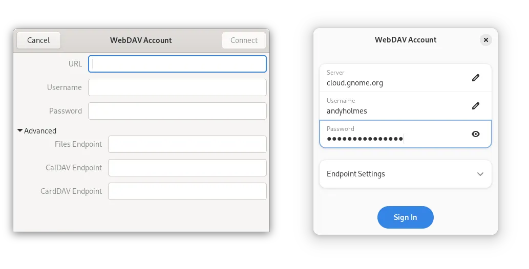 - 在过去几周里,Andy 完成了 GNOME 在线帐户中 WebDAV 支持的工作,并将其移植到 OAuth2.0 和 GTK4/Libadwaita https://gitlab.gnome.org/GNOME/gnome-online-accounts/-/merge_requests/137