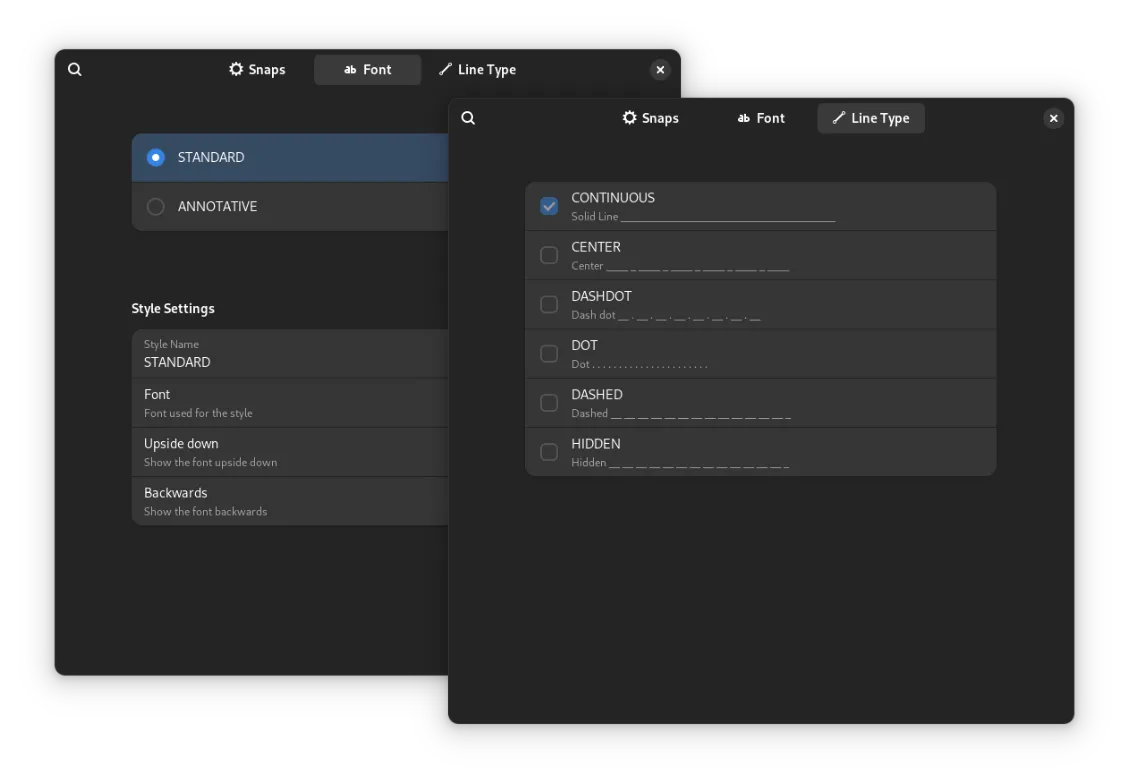 Design - GNOME 的 2D CAD 已经收到更新,其中包含许多更改。此更新为更高级的绘图实体(例如尺寸)奠定了基础。亮点包括