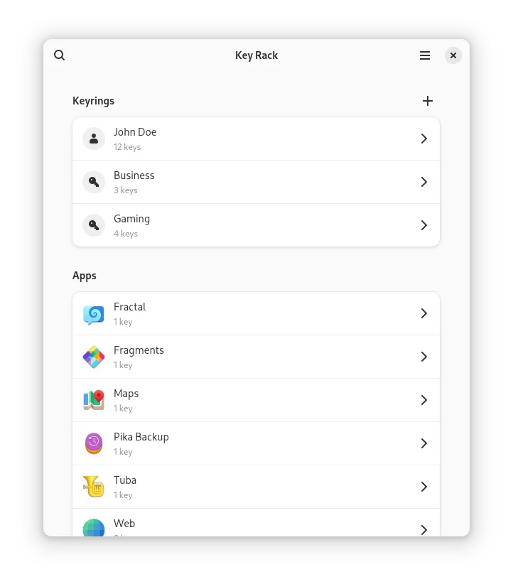 Key Rack 0.4 已发布。此版本包含 Felix 作为 STF 一部分所做的工作。该版本带来了完全重新的用户界面。但更改远不止于更好的外观。Key Rack 现在允许查看所有主机密钥环以及更改密钥环密码。密码现在可以通过新的搜索功能更容易地找到,并且可以通过界面添加新密码。
