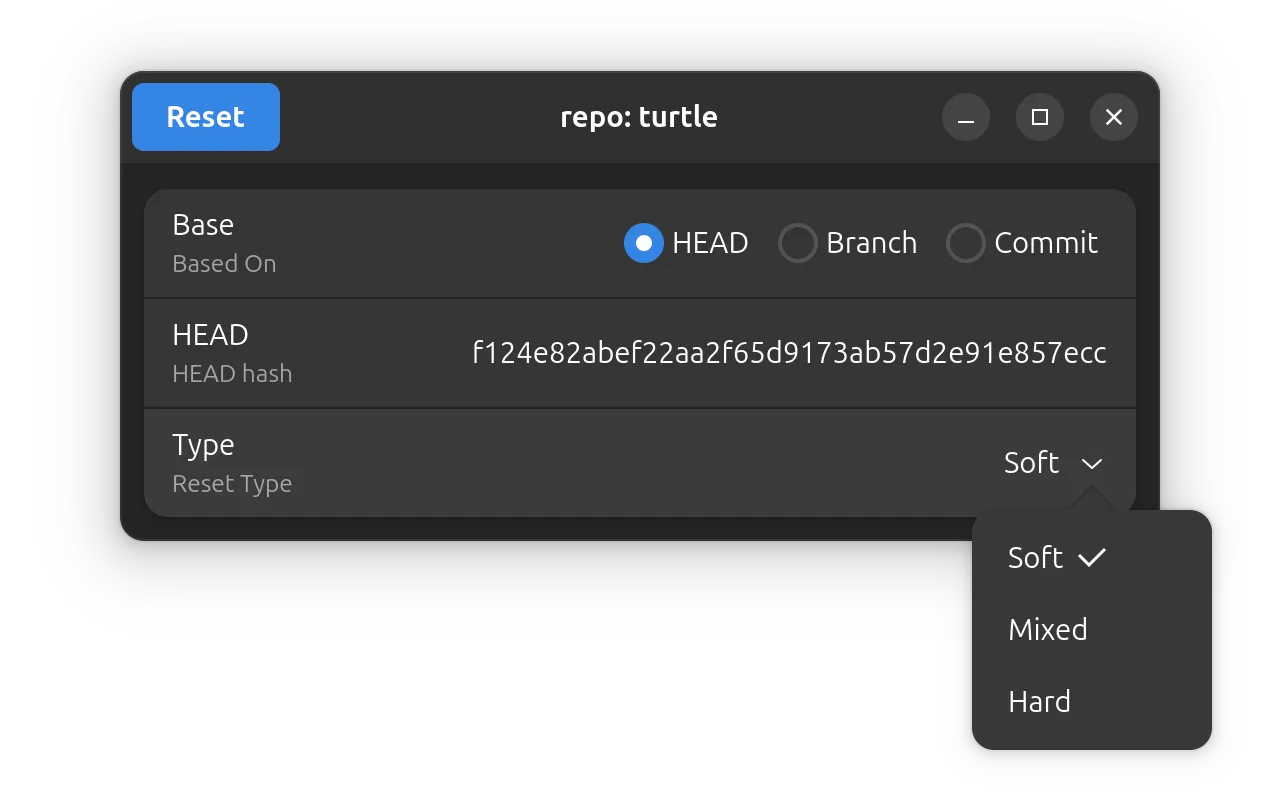 已添加一个清理和重置对话框,用于从仓库中清理未跟踪的文件或将当前分支重置到特定引用。