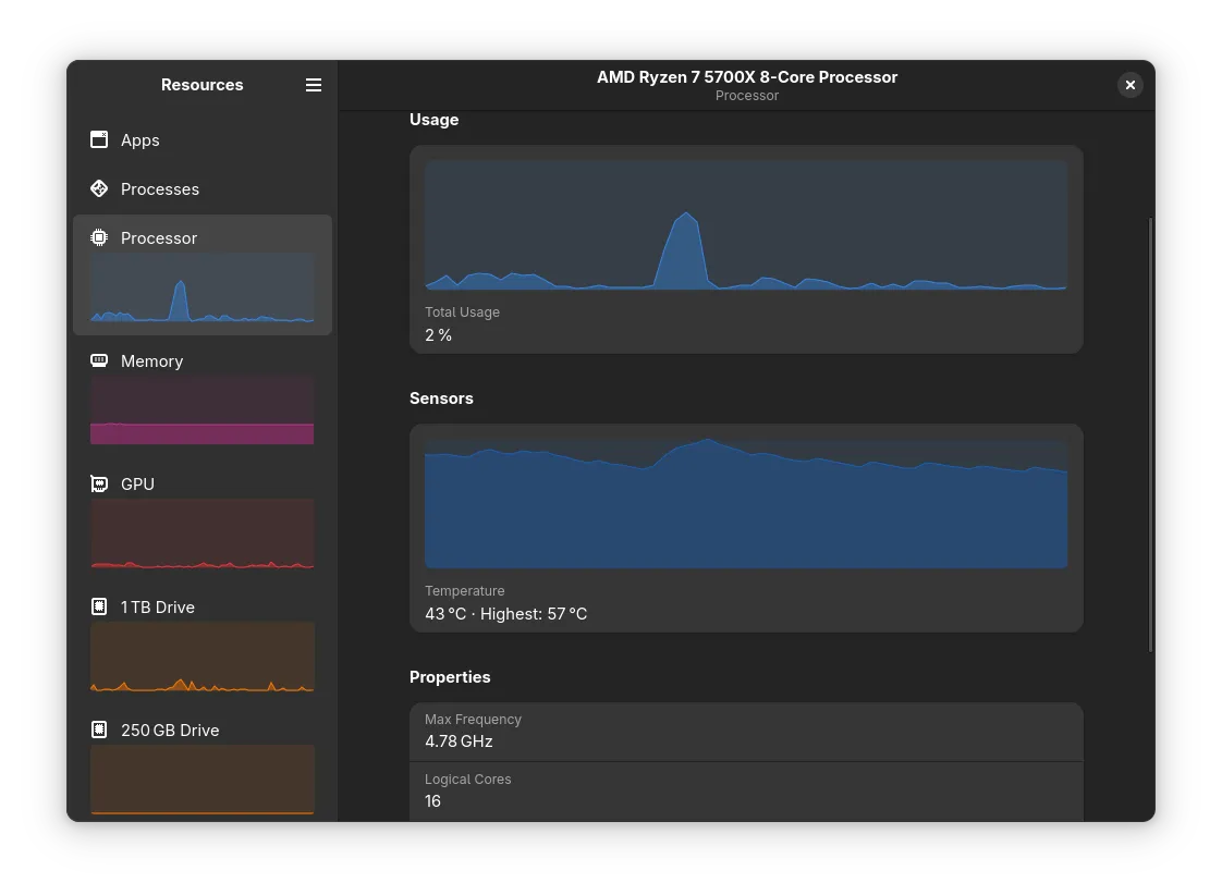 资源 1.7 已发布,支持神经处理单元 (NPU),能够选择多个进程以及为“应用程序”和“进程”视图交换使用列。