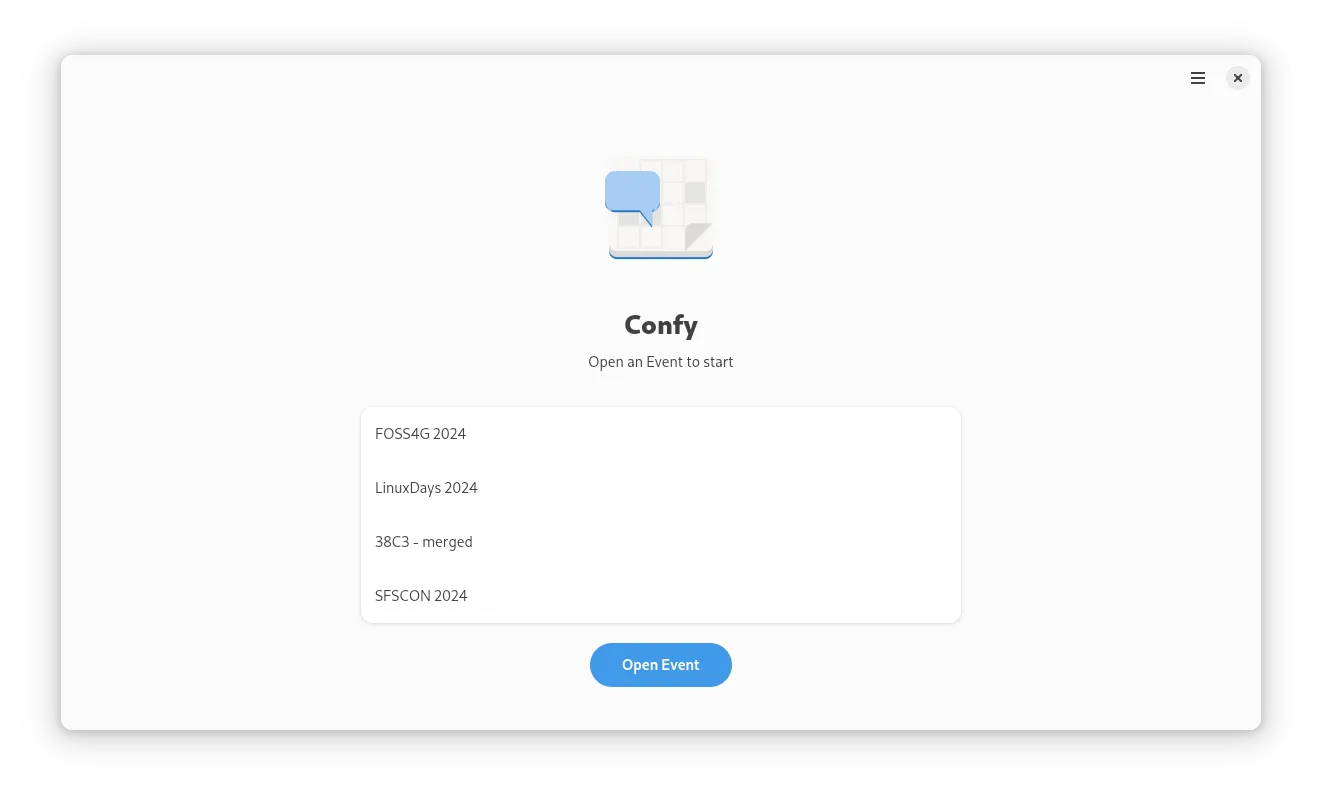 Confy 0.8.0 已发布。 Confy 是一个会议日程伴侣。 此版本带来了更新的 UI 设计、一些生活质量改进(例如最近打开的日程列表)以及日程解析的修复。 https://confy.kirgroup.net/