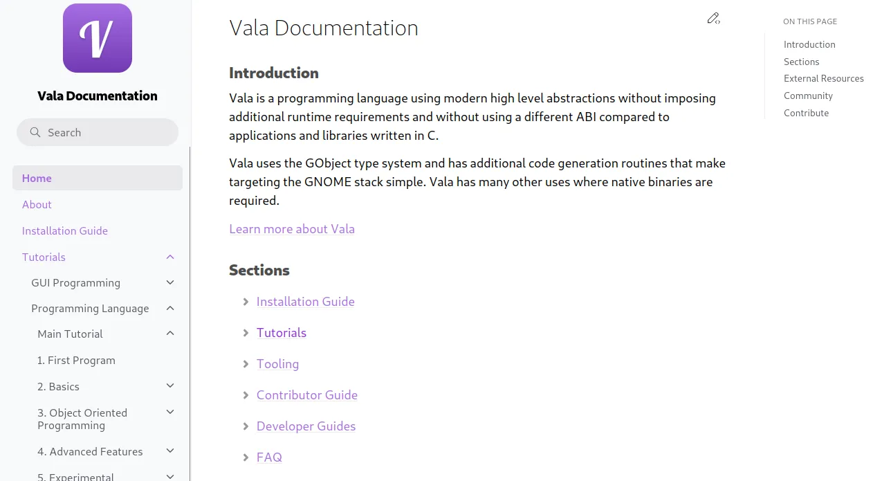 很多人可能已经看到了,但不久前我们终于正式将文档从旧的 GNOME wiki 迁移到新的网站:https://docs.vala.dev! 这项任务由 Colin Kiama 完成,历时已久。页面托管在 https://github.com/vala-lang/vala-docs 上,欢迎大家贡献和改进,我们已经开始在 issue tracker 中提交 tickets 并分配标签,特别是为新手,以便于开始提供帮助! 我们希望将更多文档和代码示例从其他位置移植到这个新网站,这一点也不难! 该网站的构建方式与其他新的 GNOME 文档网站类似,使用 sphinx,因此您甚至不需要学习新的标记语言。 祝您阅读文档和编码愉快! :D