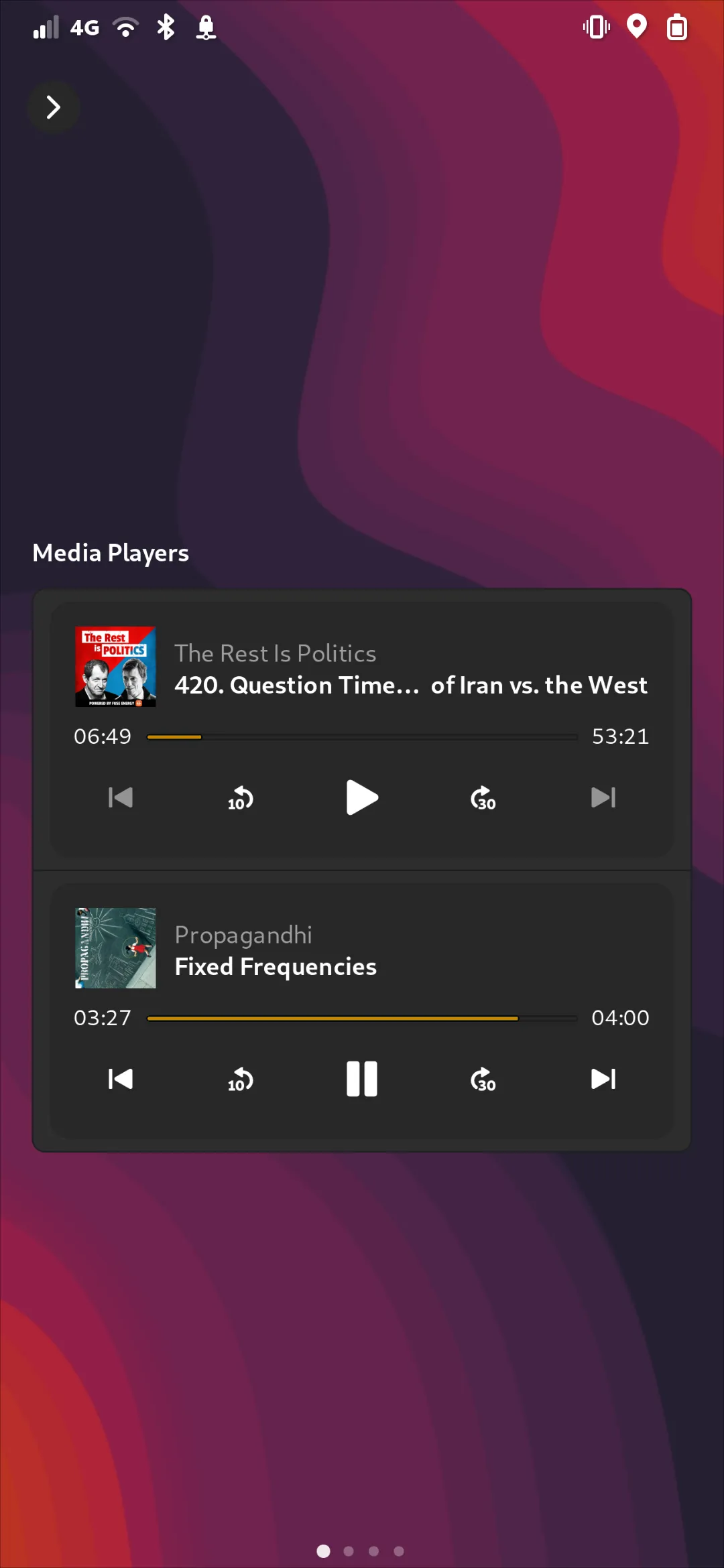 有一个新的锁屏插件,可以显示所有当前正在运行的媒体播放器(支持 MPRIS 接口)。因此,您可以在无需解锁手机的情况下在播客、Shortwave 和 Gapless 之间切换。